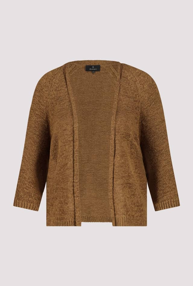Openvallend gebreid vest van Monari met driekwart raglanmouwen en ribgebreide boorden. Materiaal: Acryl 57%| polyamide 43%