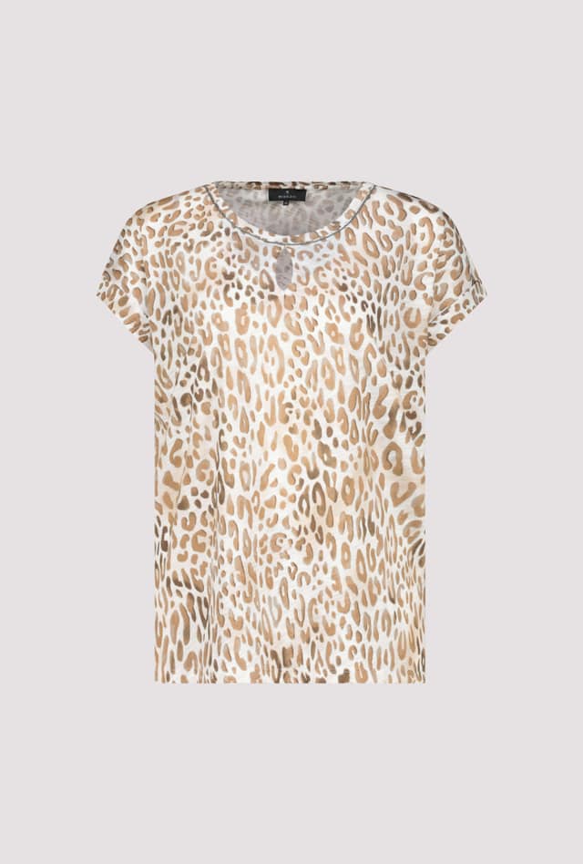 T-shirt van Monari in een animal dessin met korte aangeknipte mouwen, ronde hals en een cut-out detail aan de voorzijde.