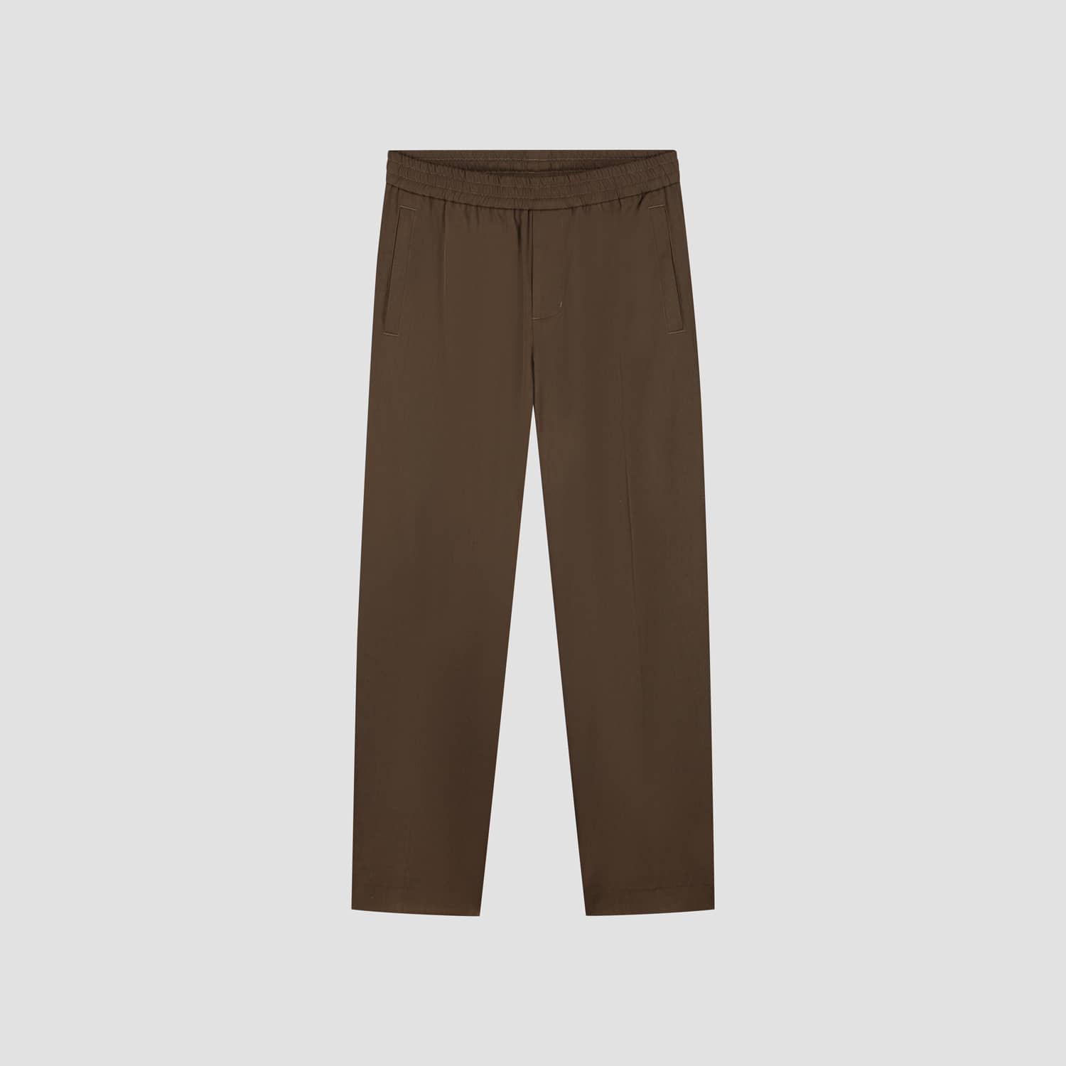 Broek van Olaf met rechte pijpen, steekzakken, een paspelzak aan de achterzijde en een elastische tailleband voorzien van trekkoord.