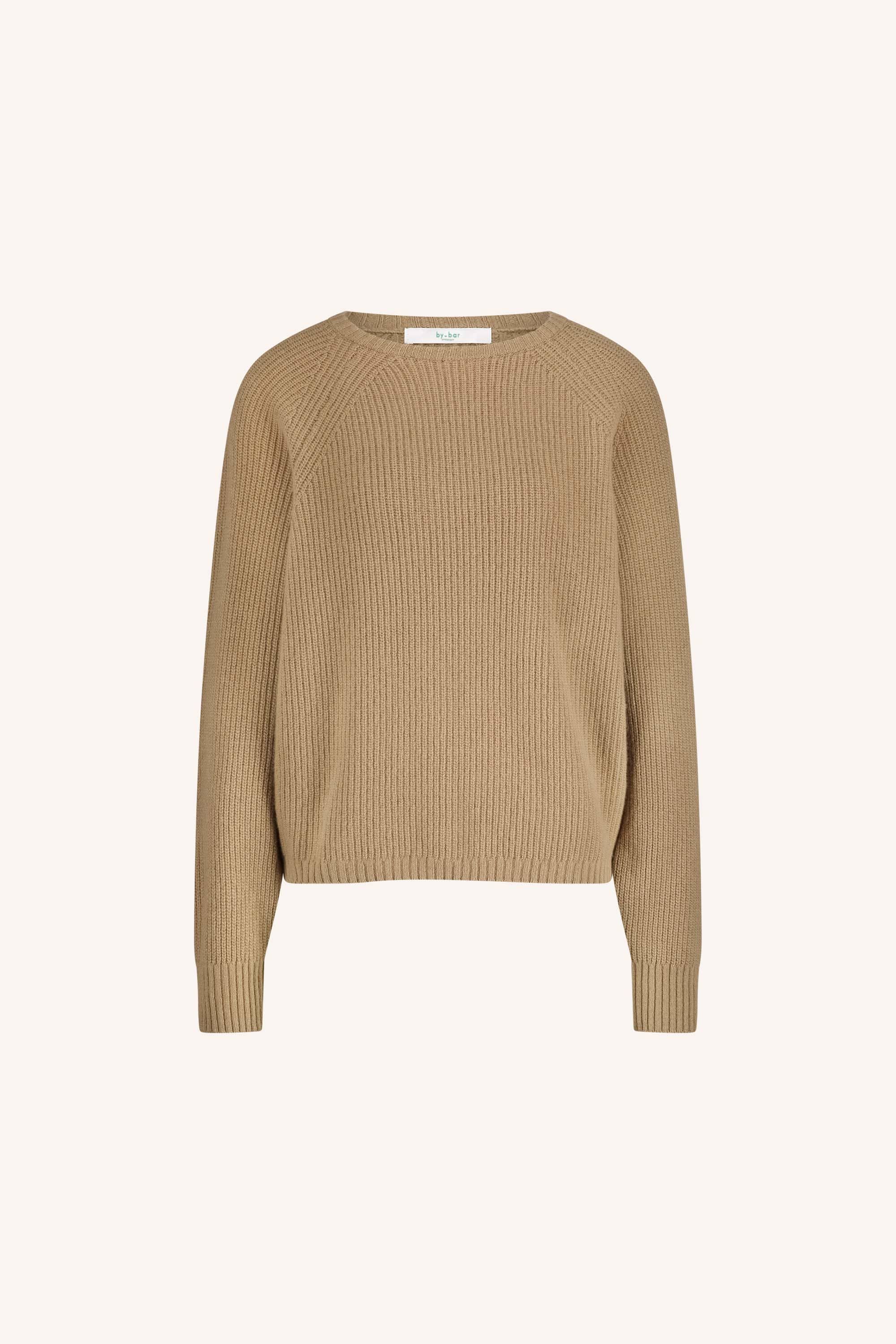 Grof gebreide trui van By-Bar met lange raglanmouwen, ronde hals en ribgebreide boorden. Materiaal: Merino wol 90%| cashmere 10%