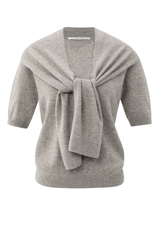Gemêleerde trui van Yaya met korte mouwen, ronde hals, vaste sjaaldetail dat over de schouders valt en ribgebreide boorden.