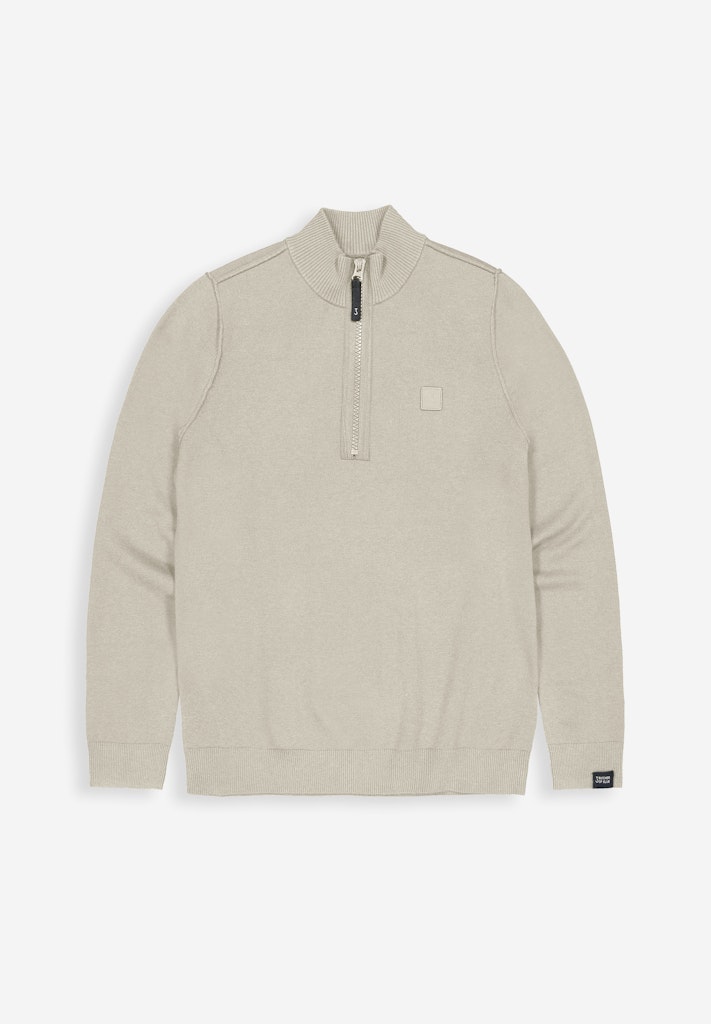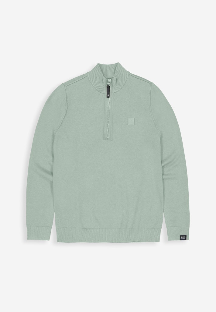 Trui van Butcher of Blue met lange mouwen, opstaande kraag voorzien van korte ritssluiting, ribgebreide boorden en een logobadge op de linkerborst. Materiaal: Wol 43%| polyester 21%| viscose 20%| polyamide 16%