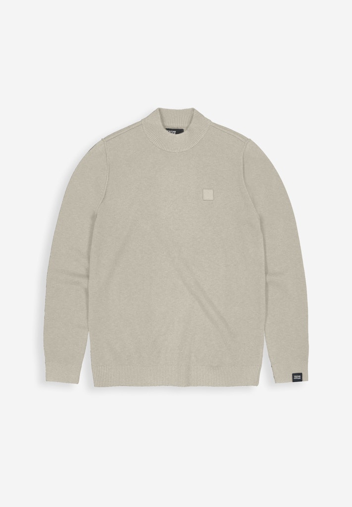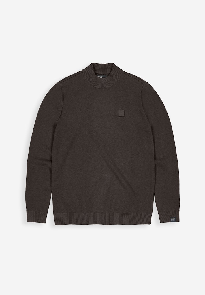 Fijn gebreide trui van Butcher of Blue met lange mouwen, licht opstaande kraag, logobadge op de linkerborst en ribgebreide boorden.