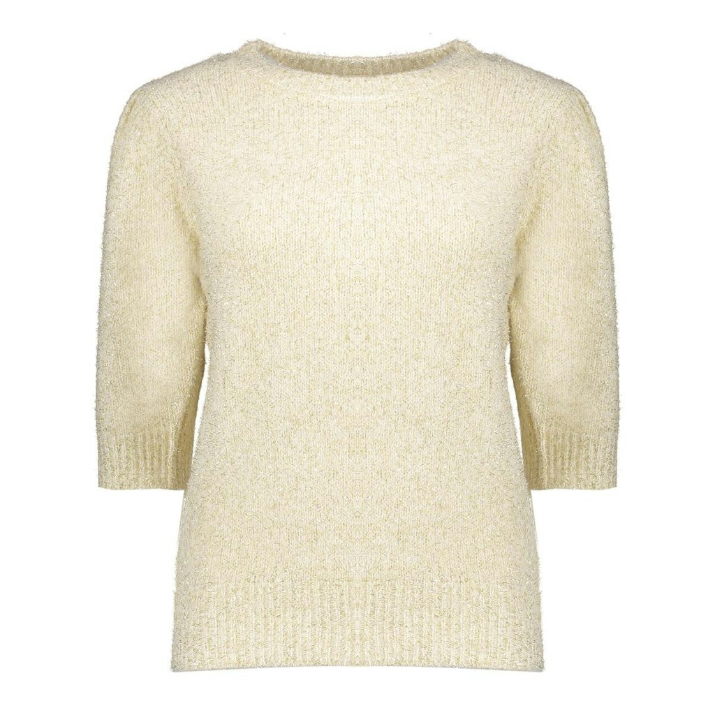 Lurex trui van Geisha met korte pofmouwen, ronde hals en ribgebreide boorden. Materiaal: Polyester 51%| polyamide 34%| wol 4%