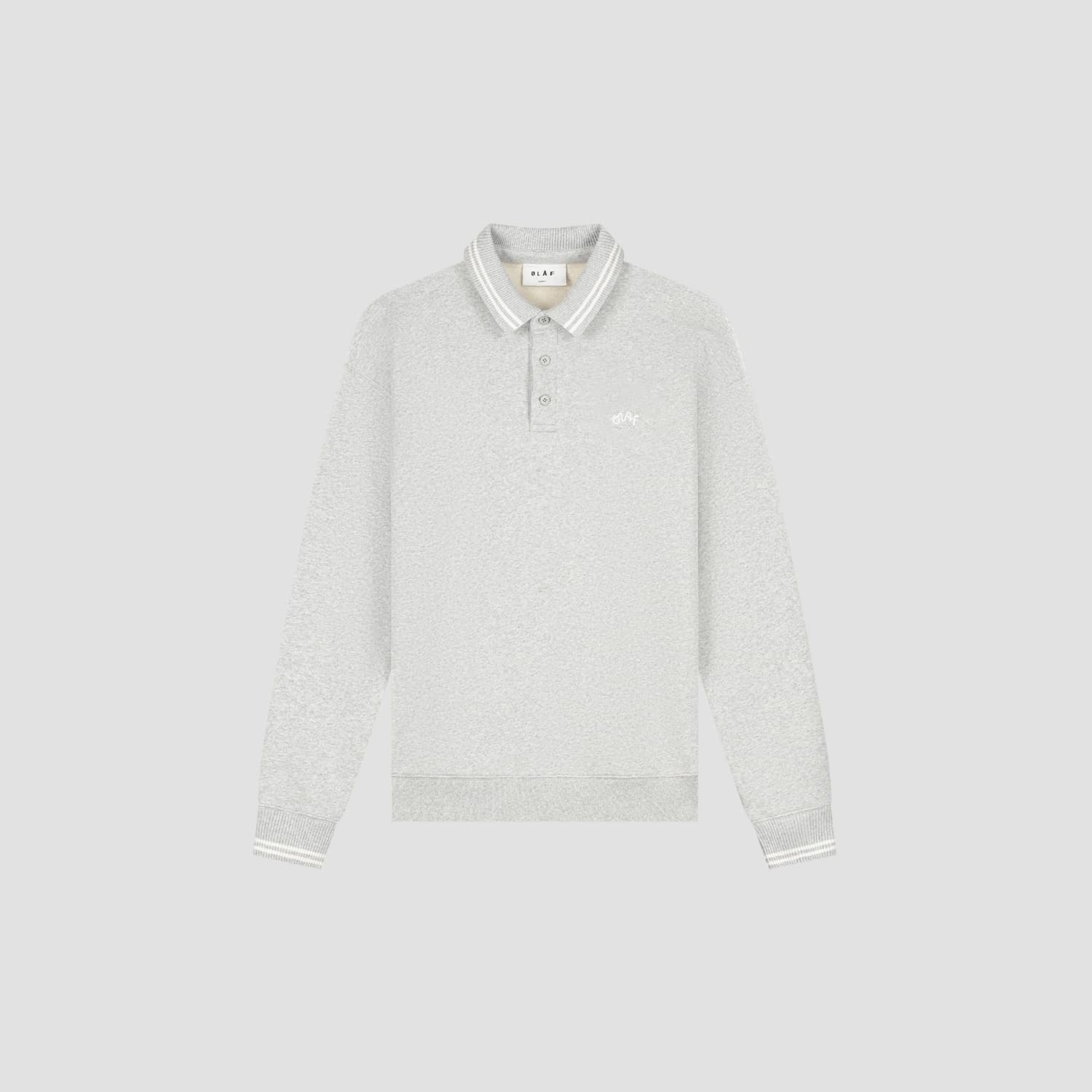 Trui van Olaf met lange mouwen, verlaagde schoudernaden, gestreepte polokraag voorzien van korte knoopsluiting, ribboorden en logo op de linkerborst.