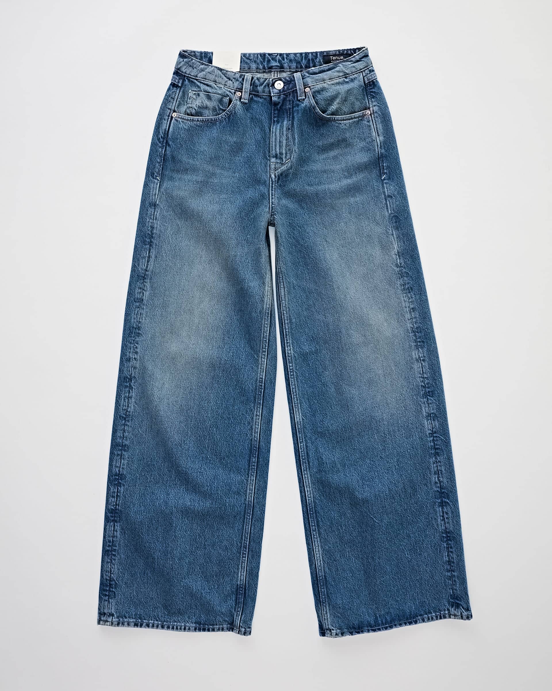 5-pocket loose fit jeans van Tenue in een vintage wassing met wijde pijpen en een knoop- en ritssluiting. Materiaal: Biologisch katoen 100%