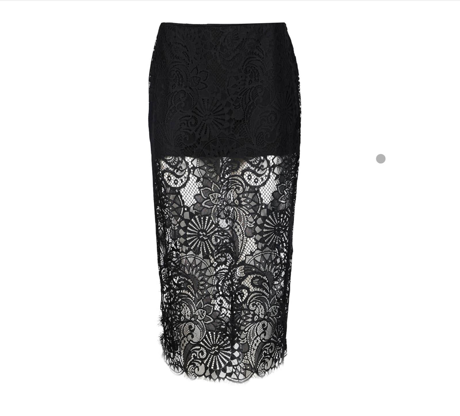 Kanten midirok van Est'seven uit de Ellemieke Vermolen collectie met een gevoerde minirok, zijsplit en een verborgen ritssluiting.