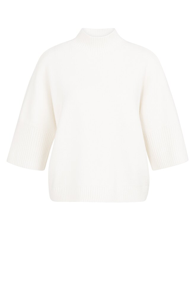Zacht gebreide trui van Yaya met driekwart mouwen voorzien van brede ribboorden en turtleneck in ribstructuur. Materiaal: Acryl 41%| polyamide 31%| katoen 26%| elastan 2%