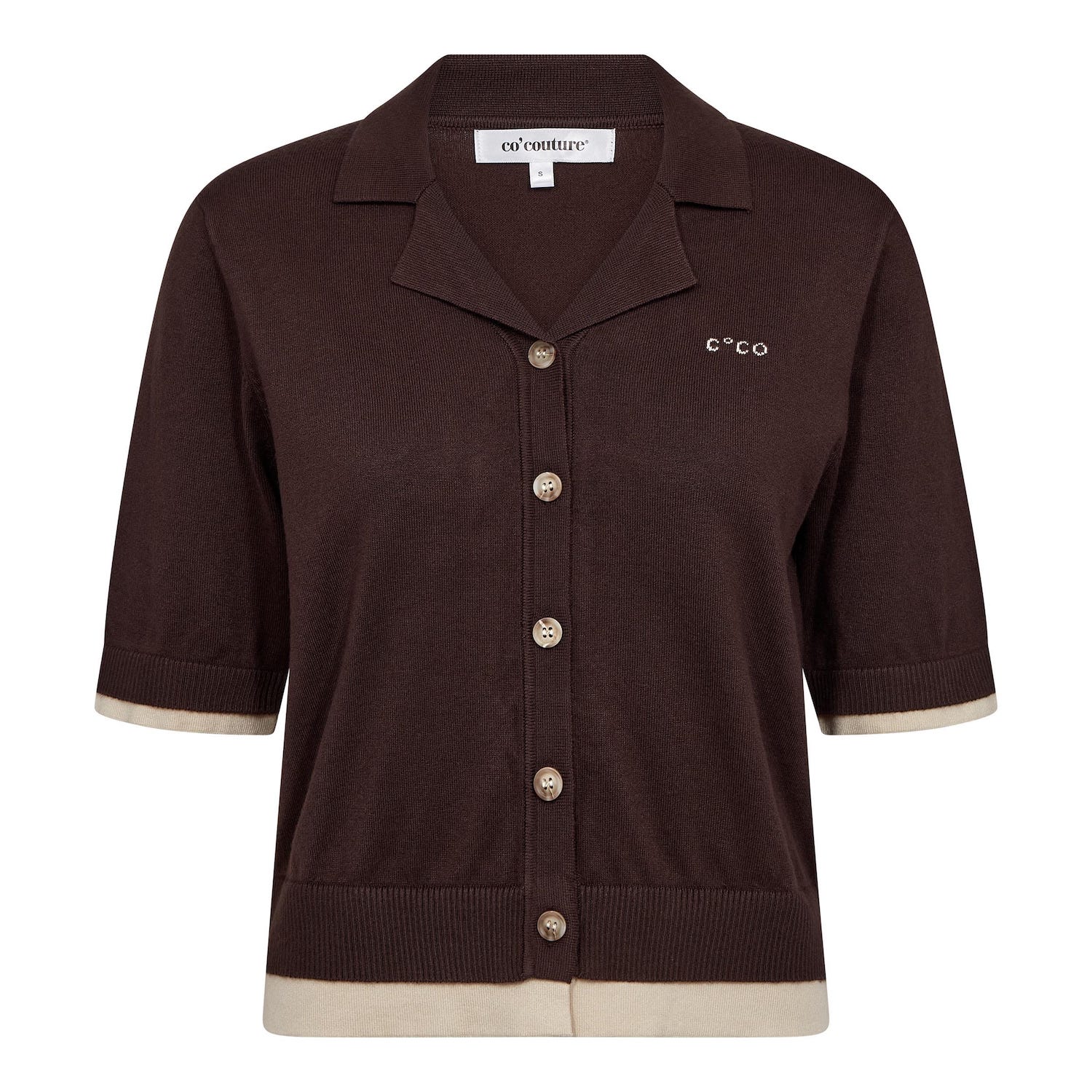 Vest van Co'Couture met korte mouwen, contrasterende details, reverskraag, knoopsluiting, geborduurd logo op de linkerborst en ribgebreide boorden. Materiaal: Viscose 100%