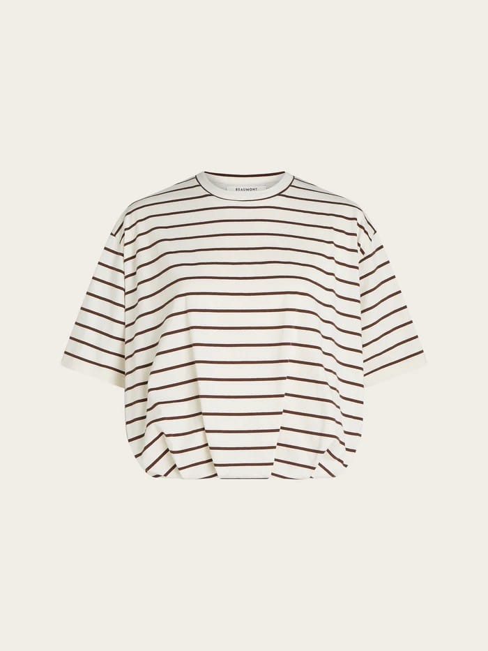 Gestreept T-shirt van Beaumont met korte mouwen, ronde hals en elastische onderzijde. Materiaal: Organic katoen 100%
