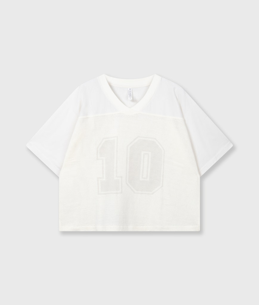 Oversized fit mesh baseball T-shirt van 10DAYS gemaakt van een combinatie van katoenen jersey aan de bovenzijde en luchtig mesh aan de onderzijde. Voorzien van een ribgebreide V-hals, kleine zijsplitten, een klein ‘10DAYS’ label op de rug en een ‘baseball 10’ print op de voorkant.