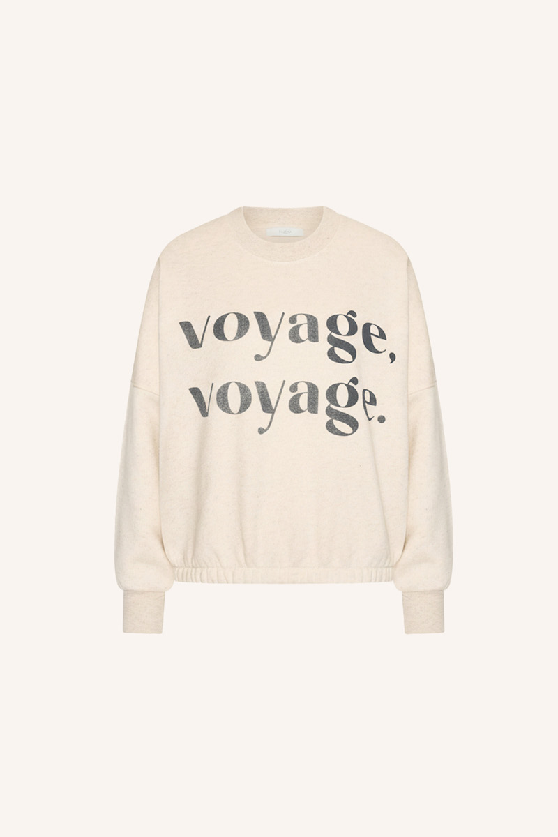 Sweater van By-Bar met een loose-fit, lange mouwen, verlaagde schoudernaden, ronde hals, elastische zoom en tekstprint op de voorzijde.