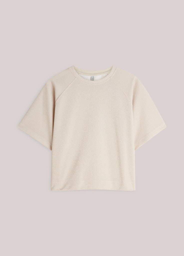 Glanzend shirt van Summum met korte raglanmouwen, ronde hals en een trekkoord in de zoom. Materiaal: polyester 56%| viscose 31%| metaal 13%