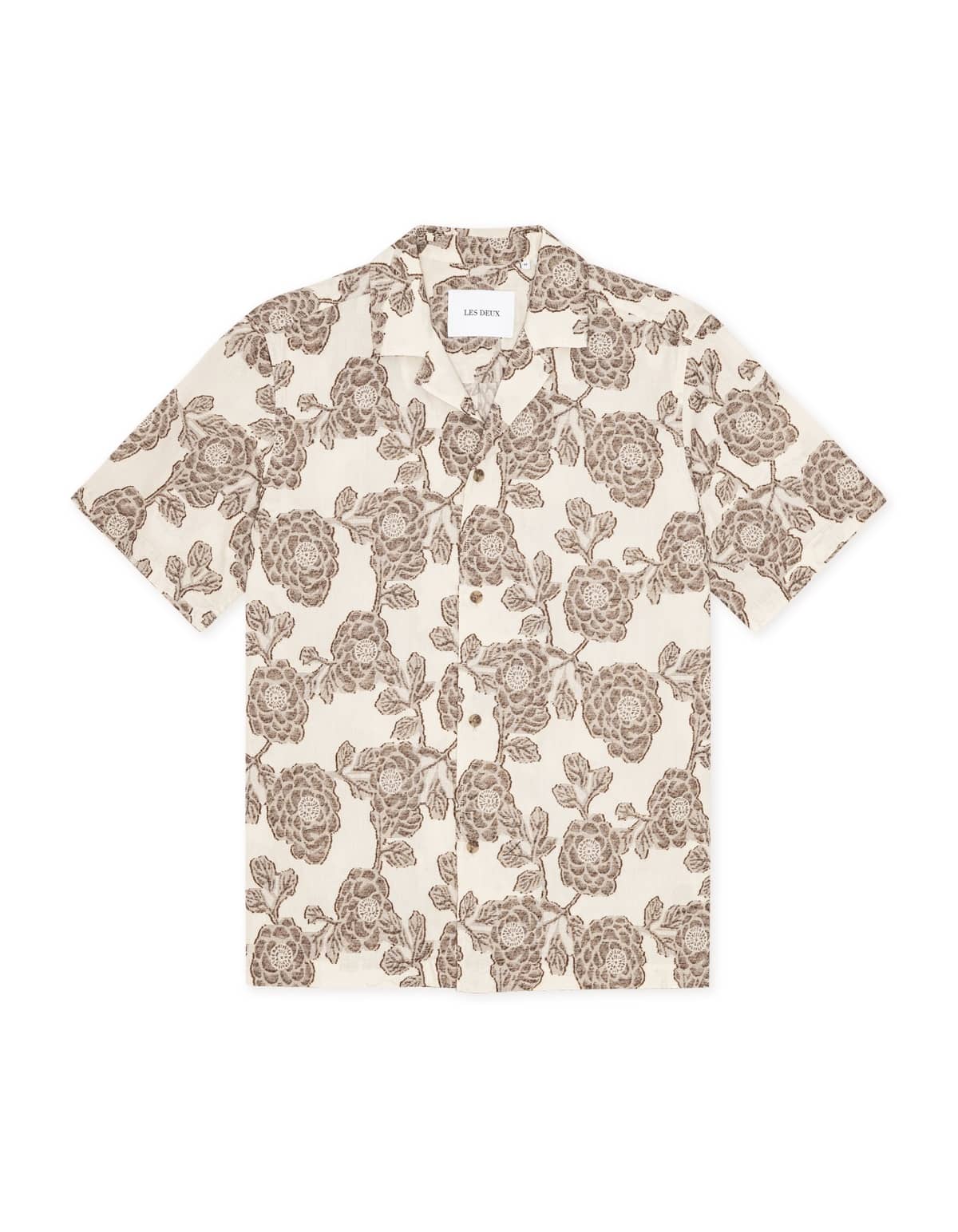 Flower jacquard overhemd van Les Deux Copenhagen met korte mouwen, reverskraag en knoopsluiting. Materiaal: Katoen 100%