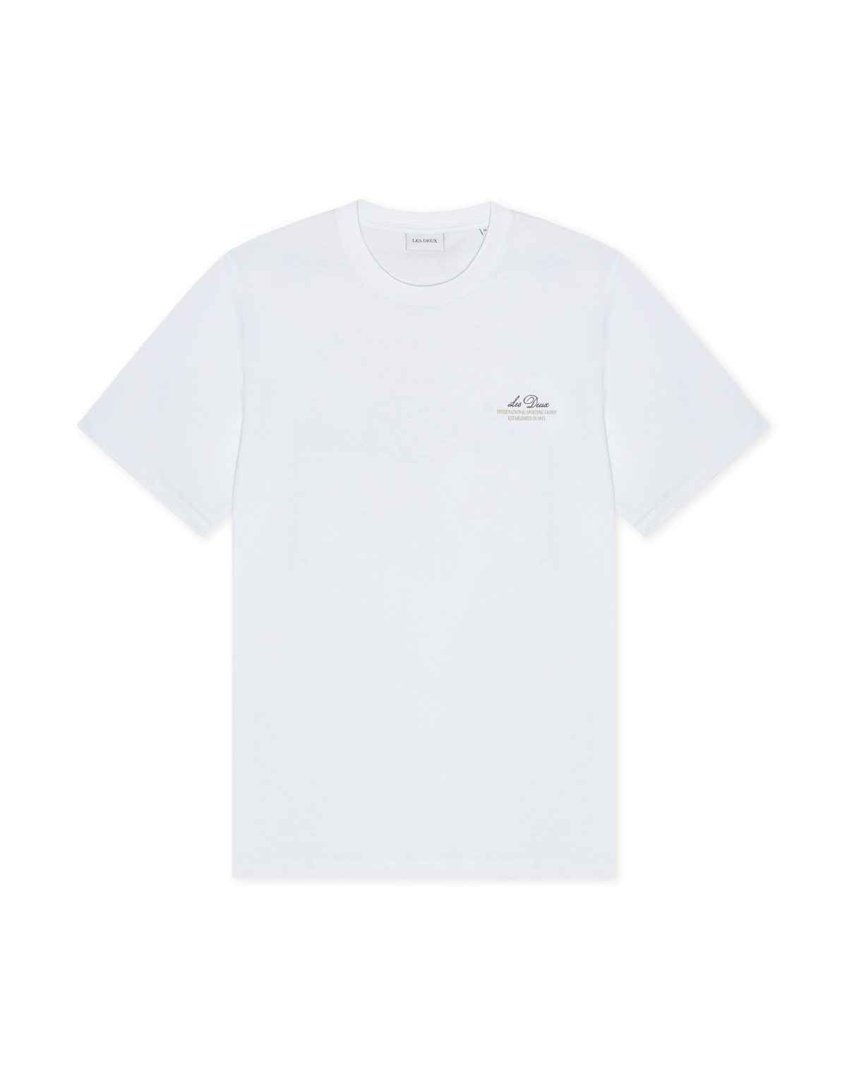 T-shirt van Les Deux Copenhagen met korte mouwen, ronde hals, logo op de linkerborst en groot logo op de achterzijde.