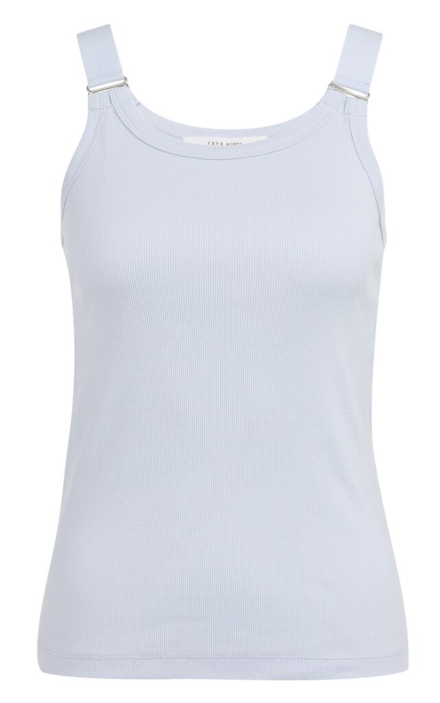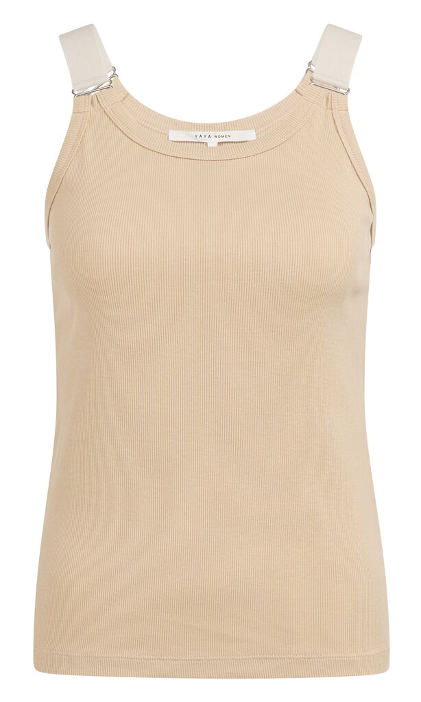 Dit stijlvolle singlet van YAYA is gemaakt van een zachte, geribde stof en heeft een aangesloten pasvorm. De elastische schouderbanden zijn afgewerkt met zilverkleurige ringdetails die zorgen voor een moderne, verfijnde look. De ronde halslijn en het comfortabele materiaal maken dit item perfect voor een gelaagde of zomerse outfit.
