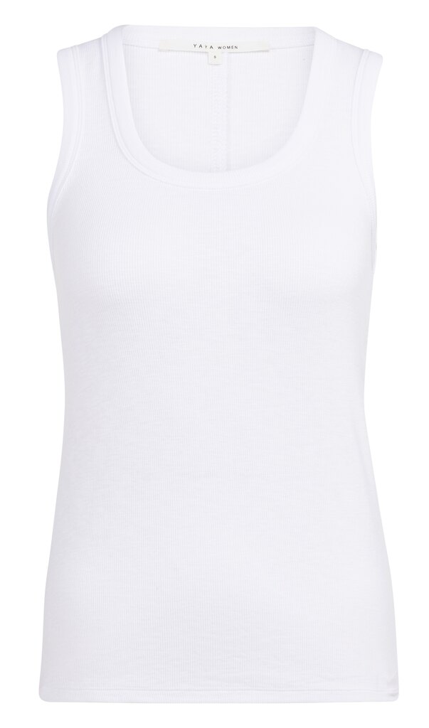 Dit comfortabele singlet van YAYA is gemaakt van een zachte, geribde stof en heeft een aangesloten pasvorm. De ronde hals en brede schouderbanden zorgen voor een klassieke uitstraling. De naad aan de achterzijde geeft een subtiel detail.