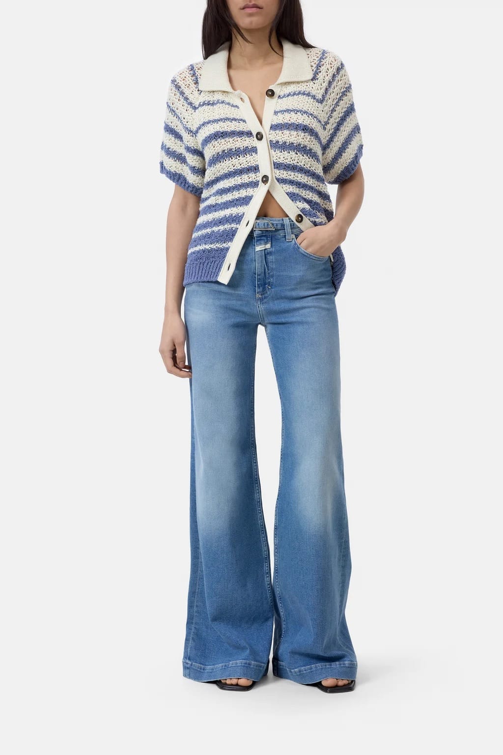 5-pocket jeans van Closed met wijde pijpen, knoop- en ritssluiting, hoge taille en een afneembaar ceintuur in de tailleband.