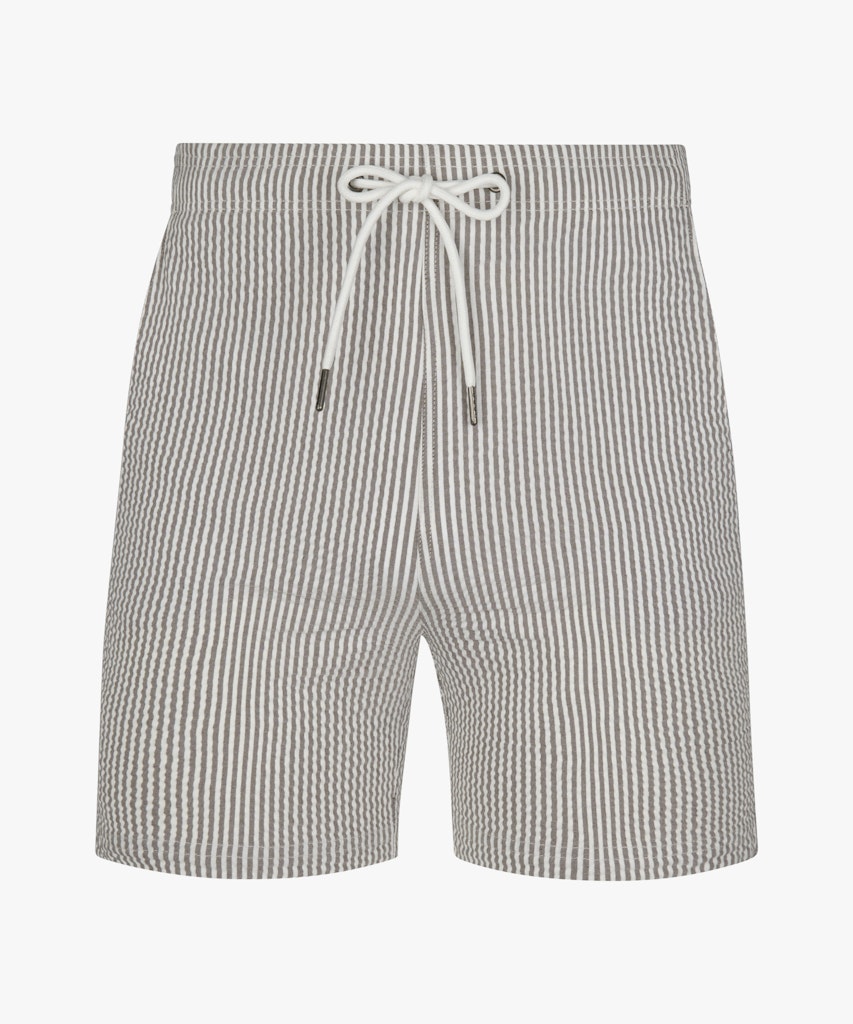 Gestreepte zwemshort van Profuomo met een opgestikte klepzak aan de achterzijde en een elastische tailleband voorzien van trekkoord. Materiaal: Polyamide 44%| polyester 25%| katoen 25%| lyocell 6%