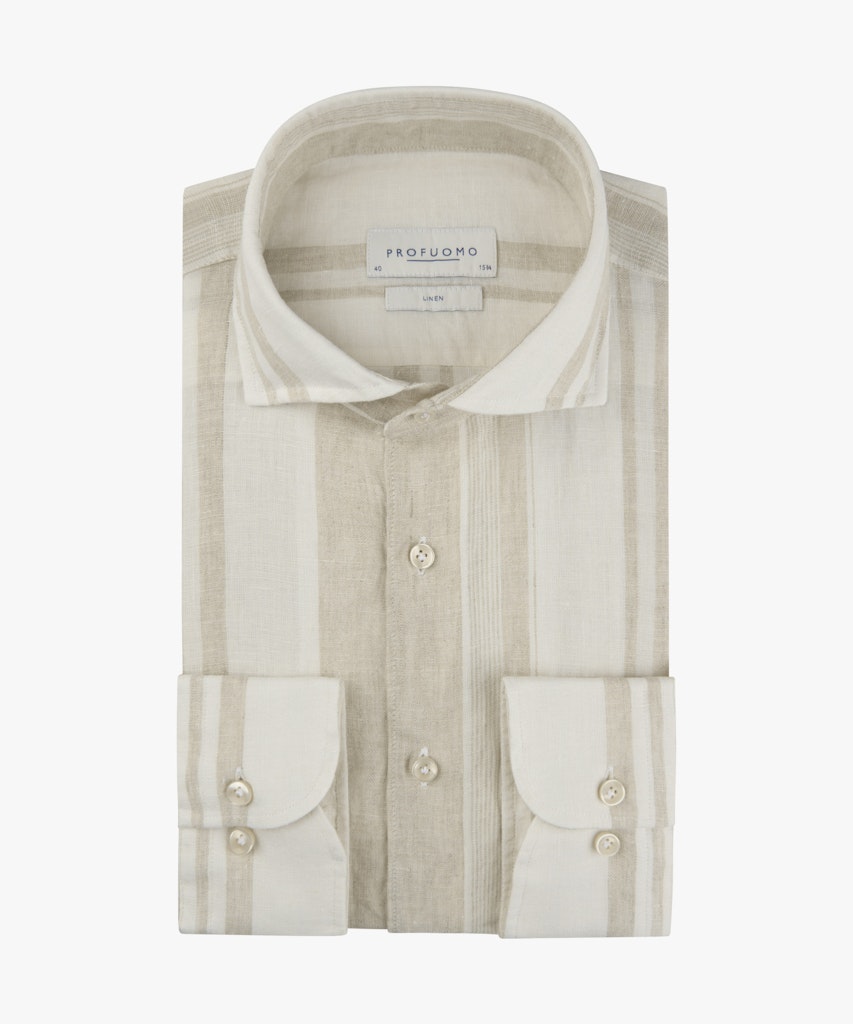 Gestreept linnen oveerhemd van Profuomo met lange mouwen, cutaway kraag en een knoopsluiting. Materiaal: Linnen 100%