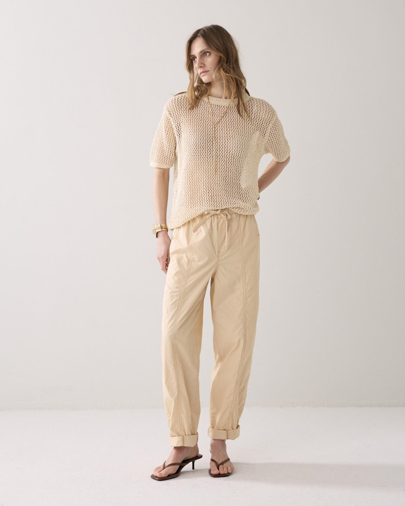 Loose fit broek van Summum met steekzakken, siernaden, twee opgestikte achterzakken en een elastische tailleband voorzien van trekkoord. Materiaal: Katoen 100%