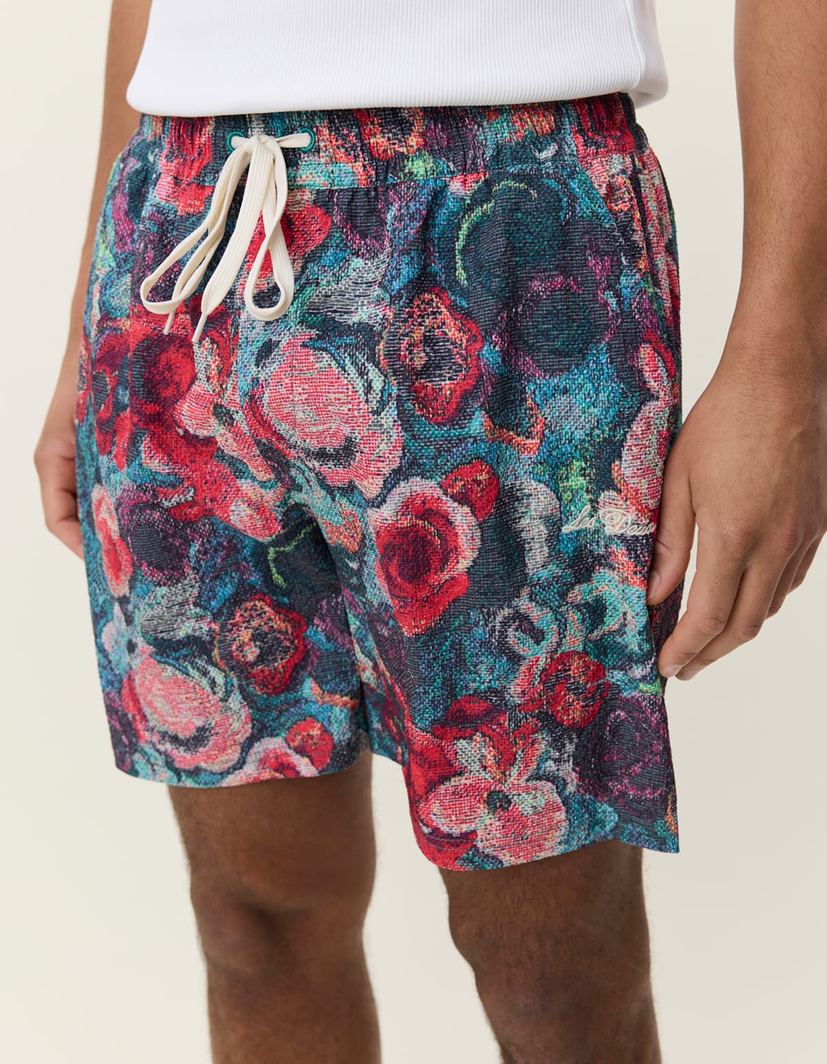 Swim shorts van Les Deux Copenhagen in een all-over dessin met een elastische tailleband voorzien van trekkoord, steekzakken en een opgestikte achterzak.