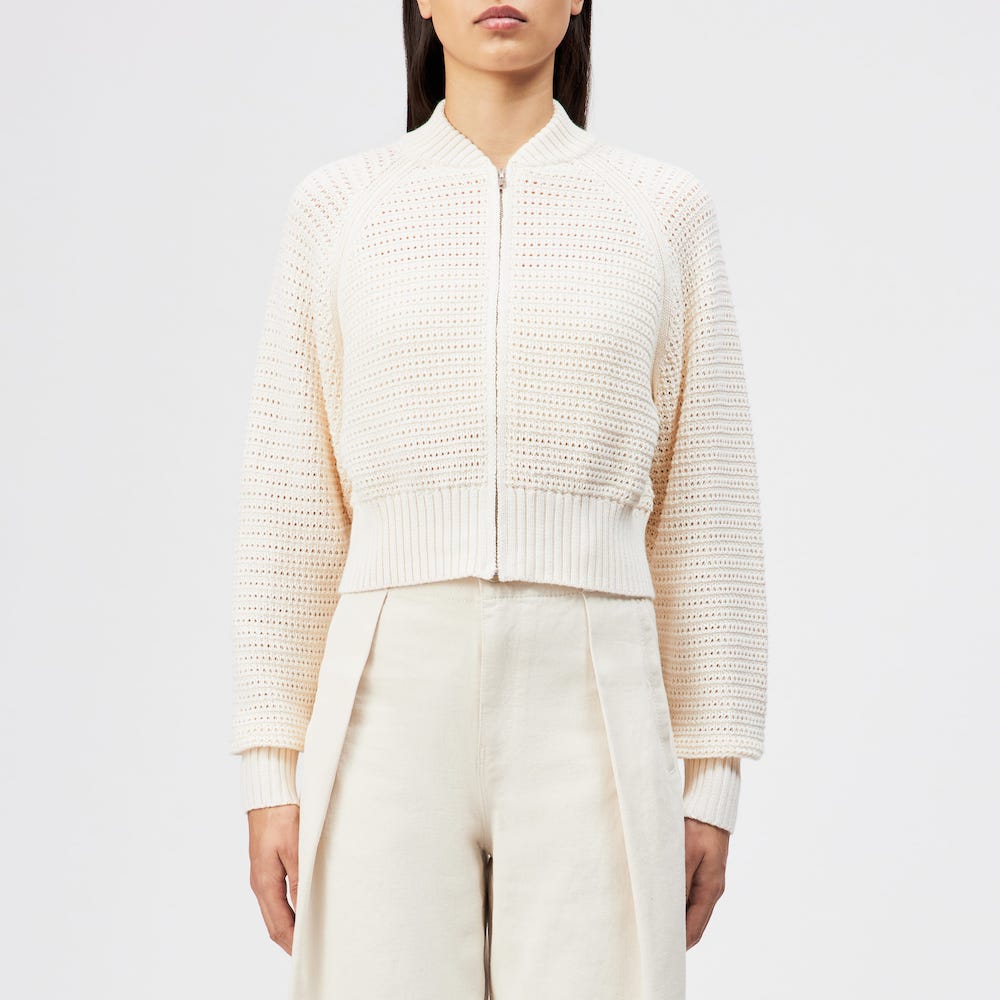 Oversized grofgebreid vest van Drykorn met lange raglanmouwen, opstaande kraag, ritssluiting en ribgebreide boorden. Materiaal: Katoen 100%