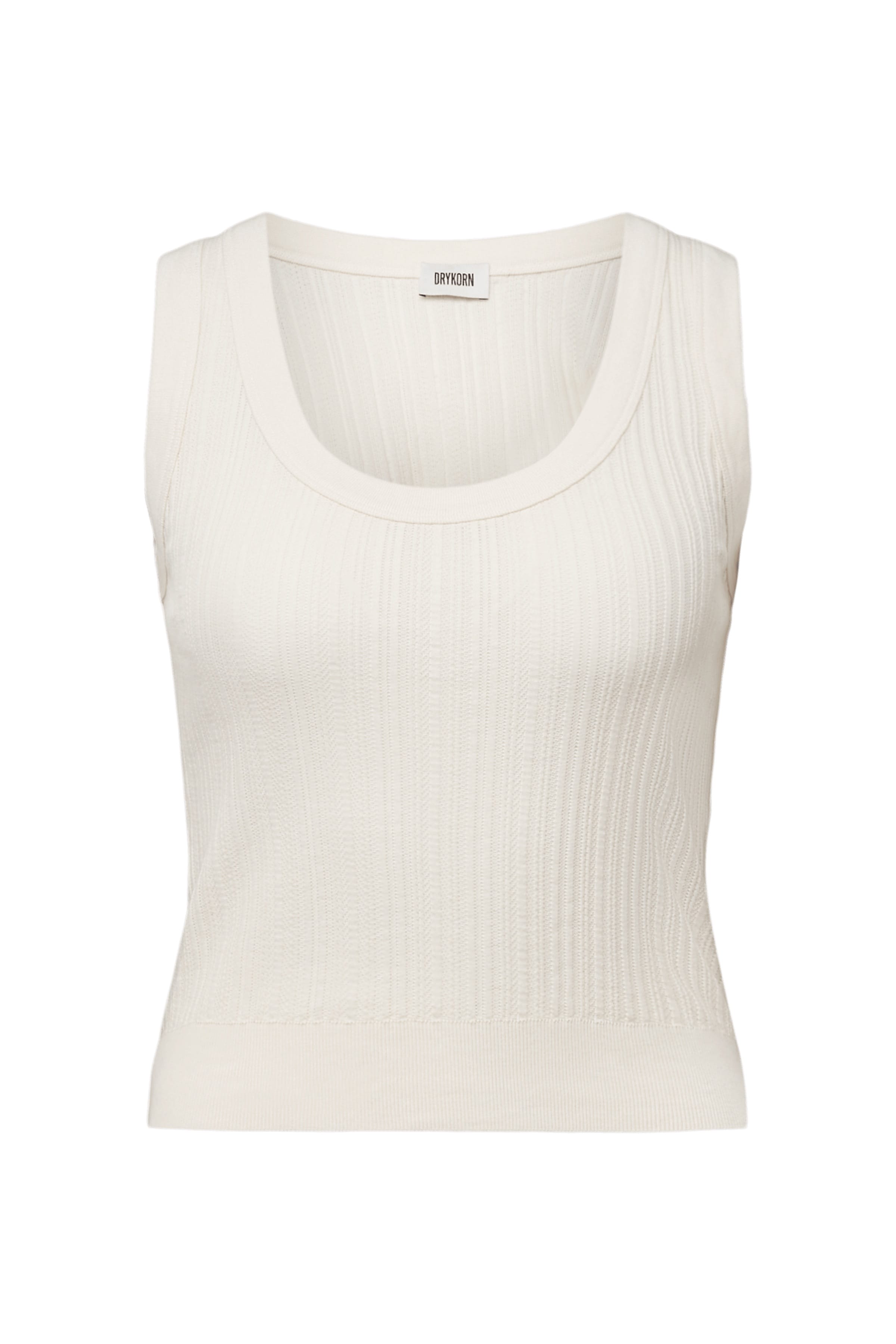 Singlet van Drykorn in een ribstructuur met een ronde hals en brede bandjes. Materiaal: Katoen 100%