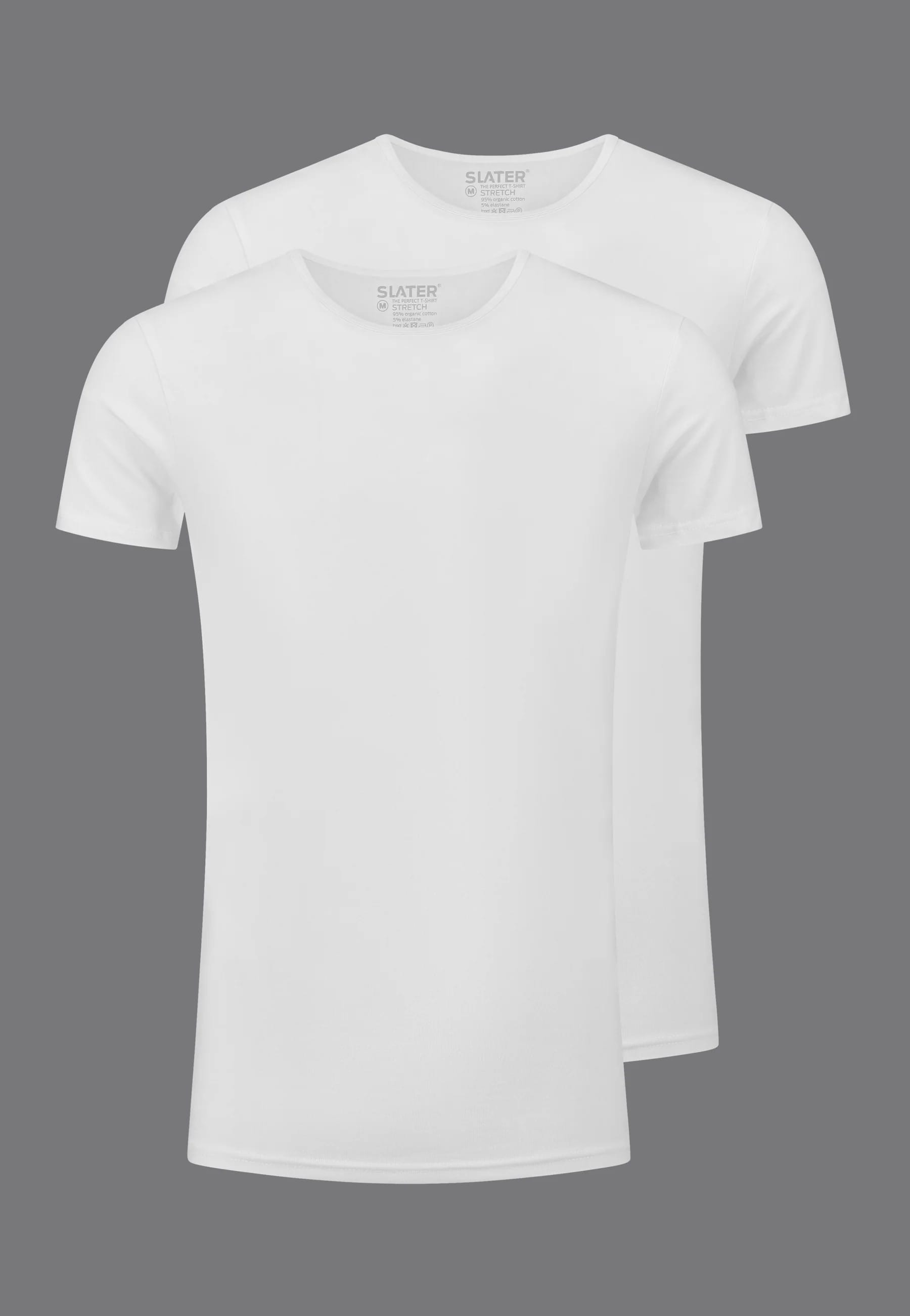 2-pack T-shirts van Slater in stretch kwaliteit met korte mouwen en een ronde hals. Materiaal: Organisch katoen 95%| elastan 5%