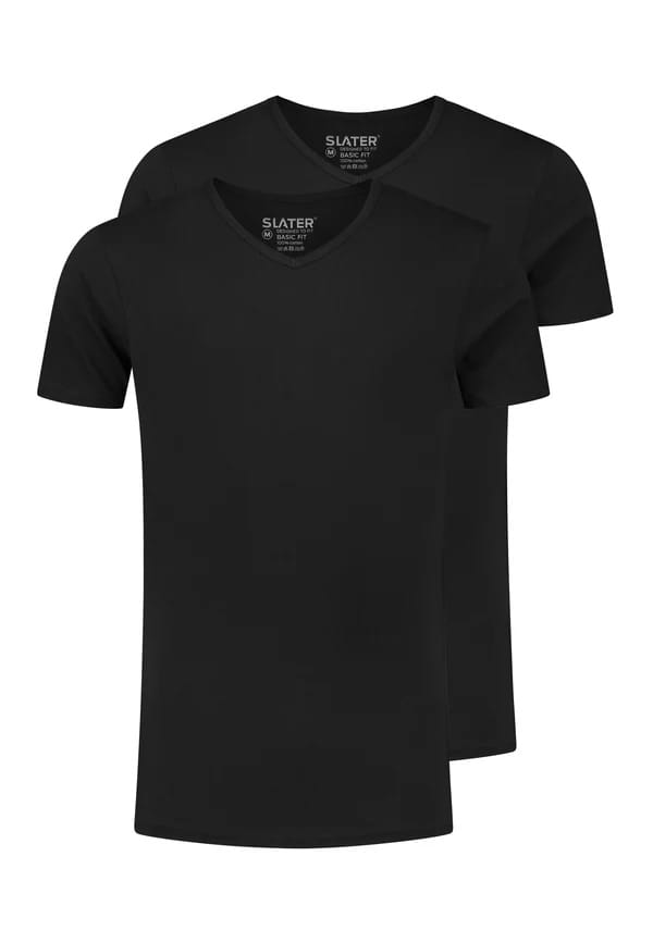 2-pack basis T-shirts van Slater met korte mouwen en een V- hals. Materiaal: Katoen 100%