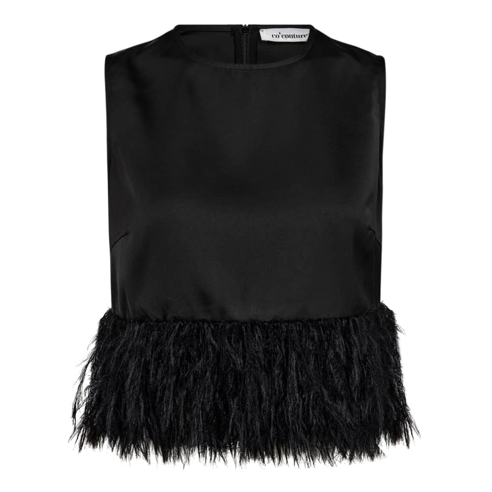 Mouwloze top van Co'Couture met een ronde hals, veertjes aan de onderzijde en een blinde ritssluiting aan de achterzijde.