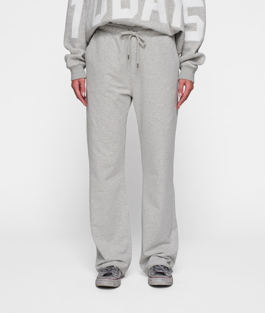 Straight jogger van 10DAYS gemaakt van GOTS gecertificeerd biologisch katoenen babyfleece met een relaxed fit, elastische tailleband voorzien van trekkoord, steekzakken, een mini stripes logo borduring onder de linkerzak, raw edge broekspijpen en een fake paspelzak achter. Materiaal: Organic katoen 95%| elastan 5%