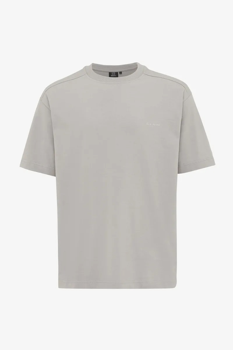 T-shirt van Genti met korte mouwen, ronde hals, logoprint op de linkerborst en een grote bloemprint aan de achterzijde.