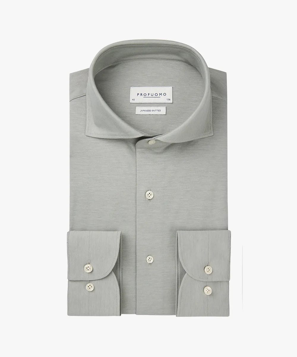 Japanese knitted overhemd van Profuomo met lange mouwen, wide-spread kraag en een knoopsluiting. Materiaal: Katoen 50%| polyester 50%
