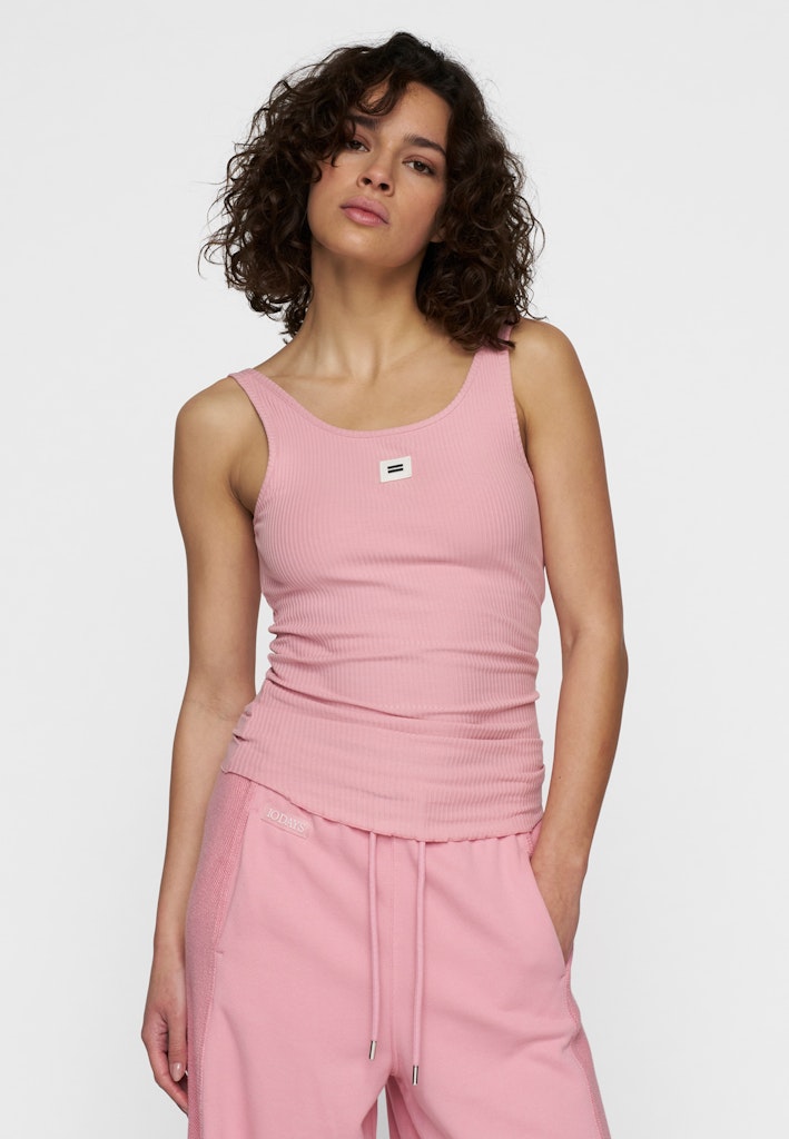 Slim fit tank top van 10Days met ingebouwde unpadded bh, gemaakt van comfortabel katoenen ribjersey. Voorzien van een ronde hals met een lage rug, een ronde zoom met babylock afwerking, een klein label in de linker zijnaad en een mini stripes logo patch op de borst. Materiaal: Organic katoen 95%| elastan 5%