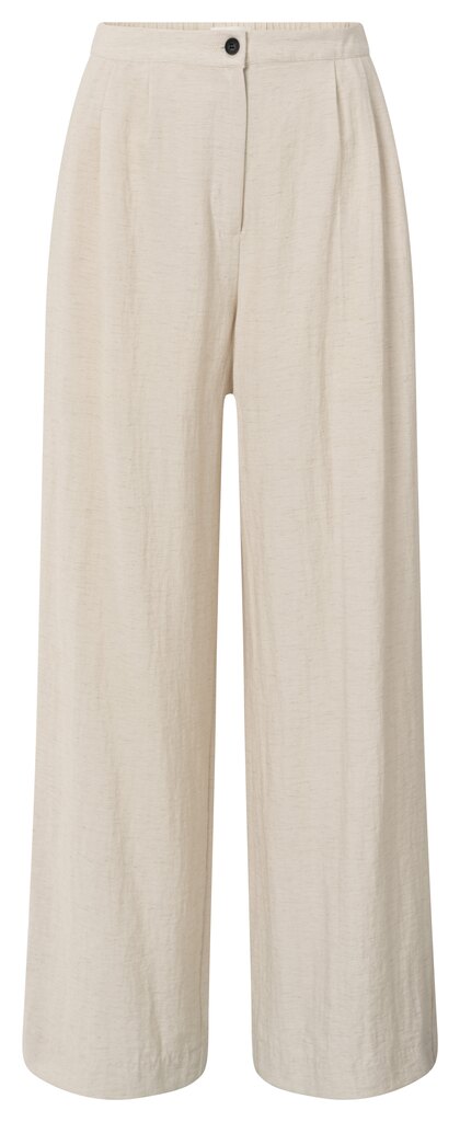 Geweven broek van Yaya met wijde pijpen, knoop- en ritssluiting, bandplooien, steekzakken en twee klepzakken aan de achterzijde. Materiaal: Viscose 56%| polyamide 34%| linnen 10%