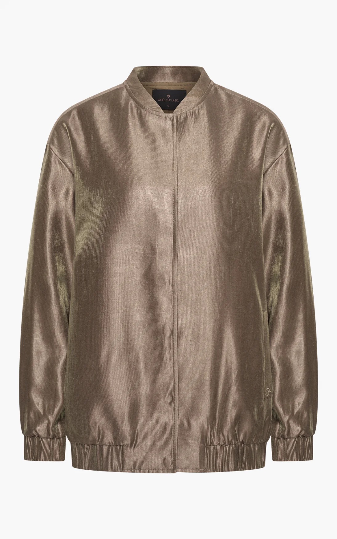 Glanzend jacket van Aimee the Label met lange mouwen, verborgen drukknoopsluiting, steekzakken en elastische boorden.