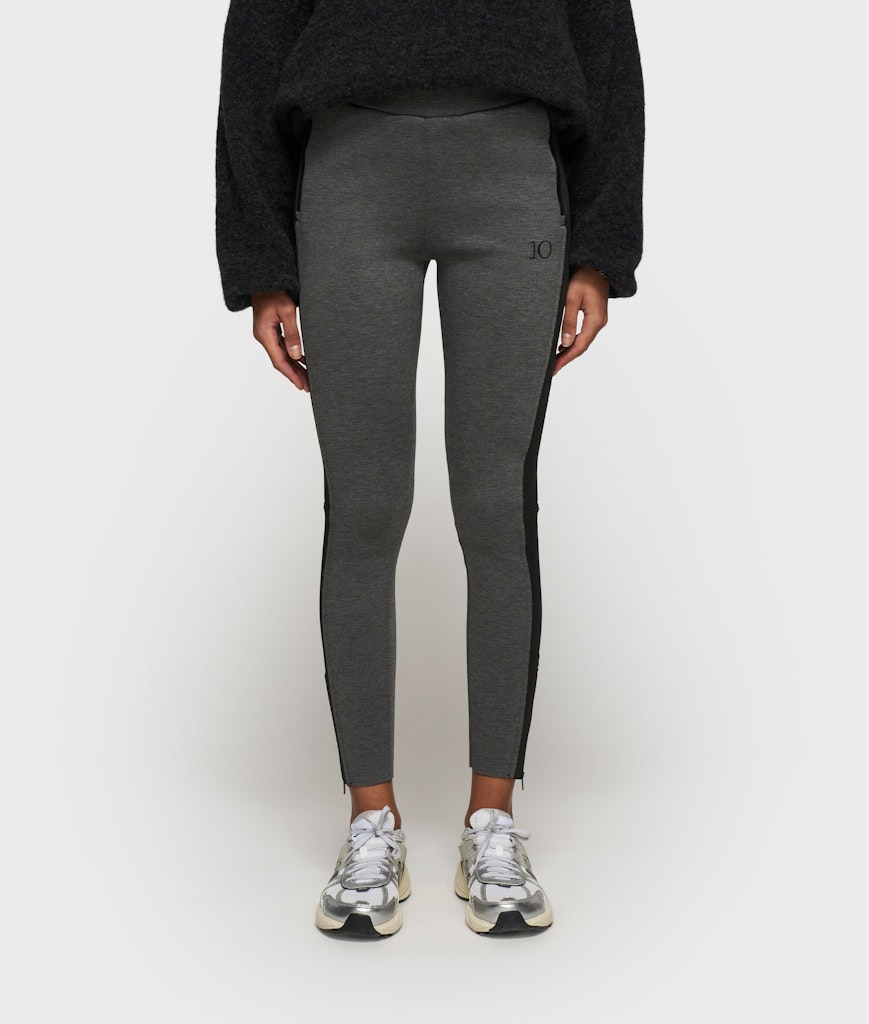Slim fit stretch scuba broek legging van 10DAYS. Met ritszakken, ritsen onderaan de broekspijpen, een raw edge broekpijpafwerking en een '10' monogram borduring onder de linker ritszak.