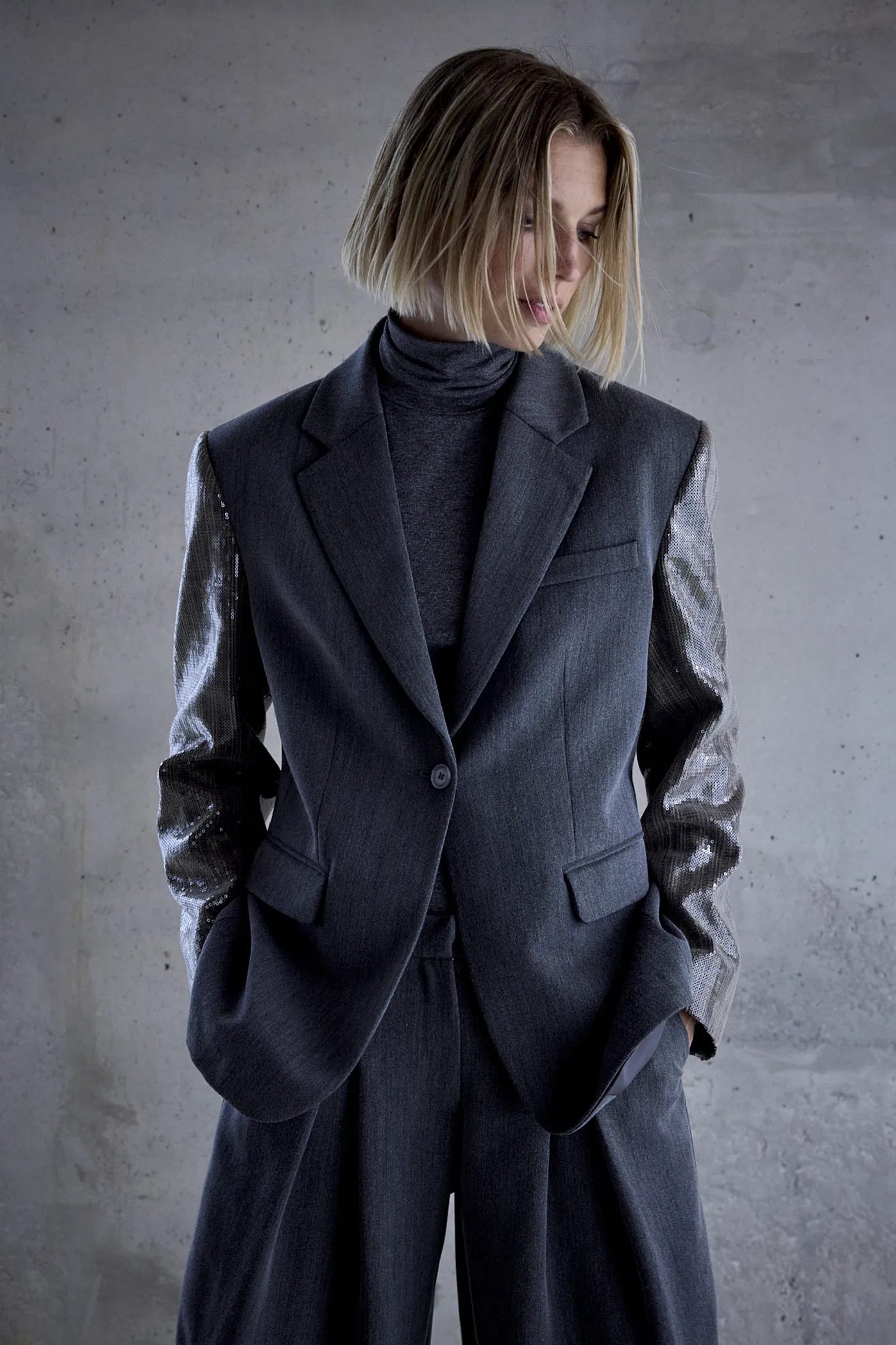Boyfriend blazer van Femmes du Sud met pailletten op de mouwen, reverskraag, knoopsluiting, paspelzak op de borst en twee klepzakken. Materiaal: Polyester 74%| viscose 23%| elastan 3%