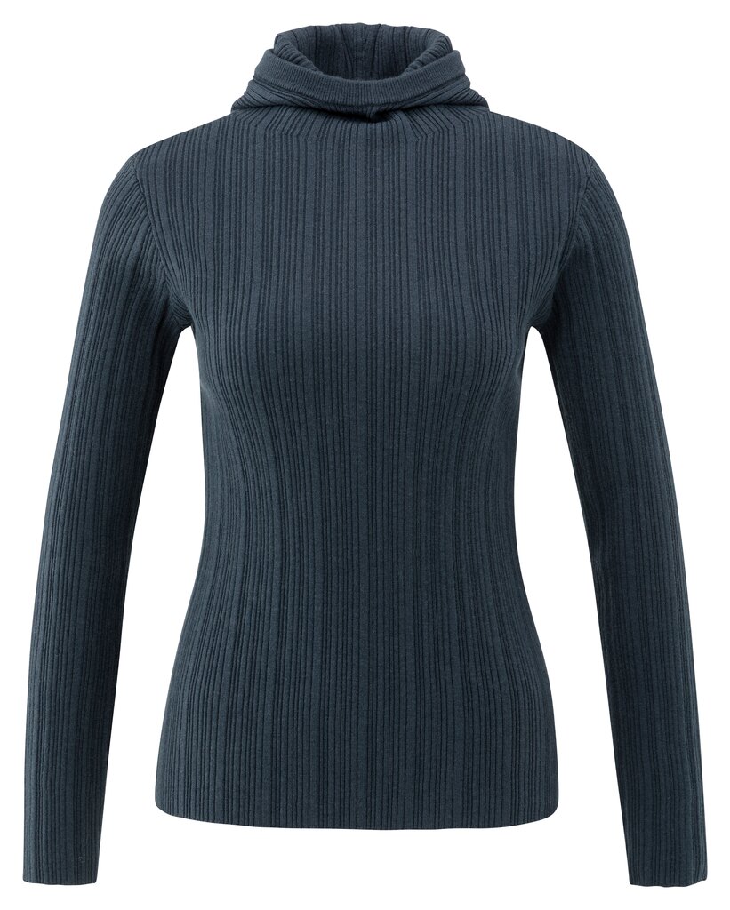Geribde nauwsluitende sweater van Yaya met lange mouwen, opstaande kraag en een capuchon.