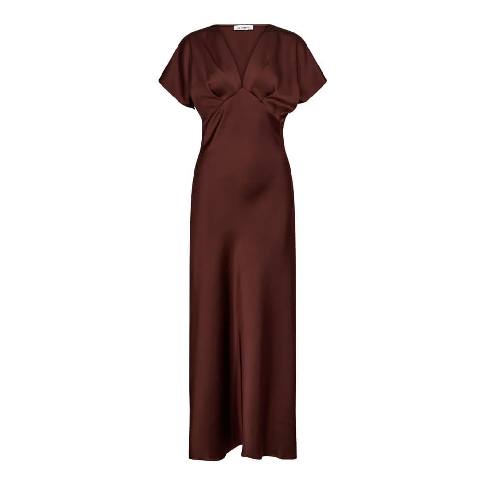 Glanzende jurk van Co'Couture met korte aangeknipte mouwen, V-hals, plooi details en een verborgen ritssluiting.