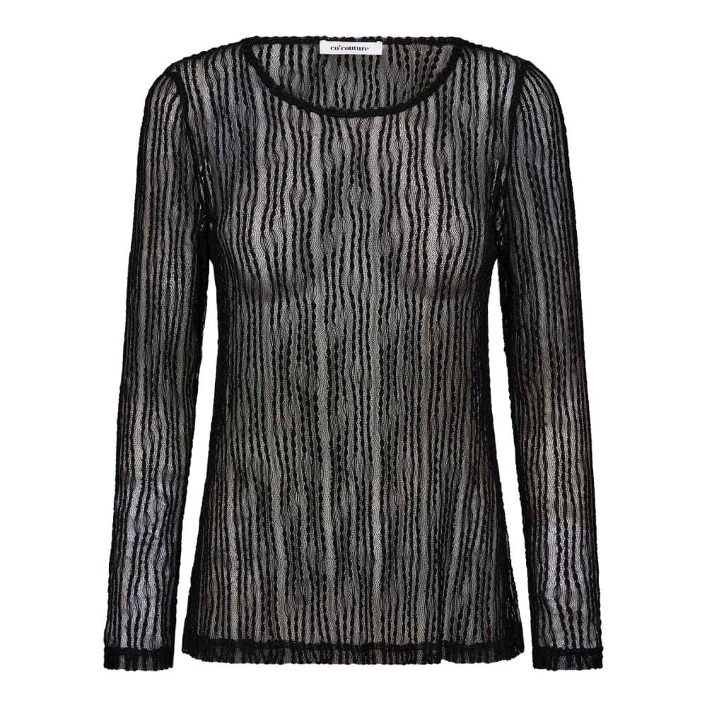 Gestreepte mesh top van Co'Couture met lange mouwen en een ronde hals. materiaal: Polyamide 90%| elastan 10%