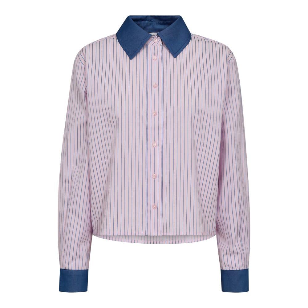 Gestreepte blouse van Co'Couture met lang mouwen voorzien van contrastrende manchetten, contrasterende kraag en een knoopsluiting.
