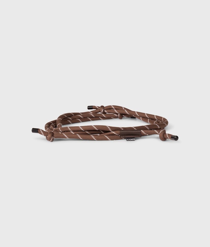 Verstelbare koordriem van 10DAYS, gemaakt van stevig polyester. Voorzien van metalen cord ends, dubbele knopen en een label aan het uiteinde van het koord. Lengte riem: 165 cm. Materiaal: Polyester 100%
