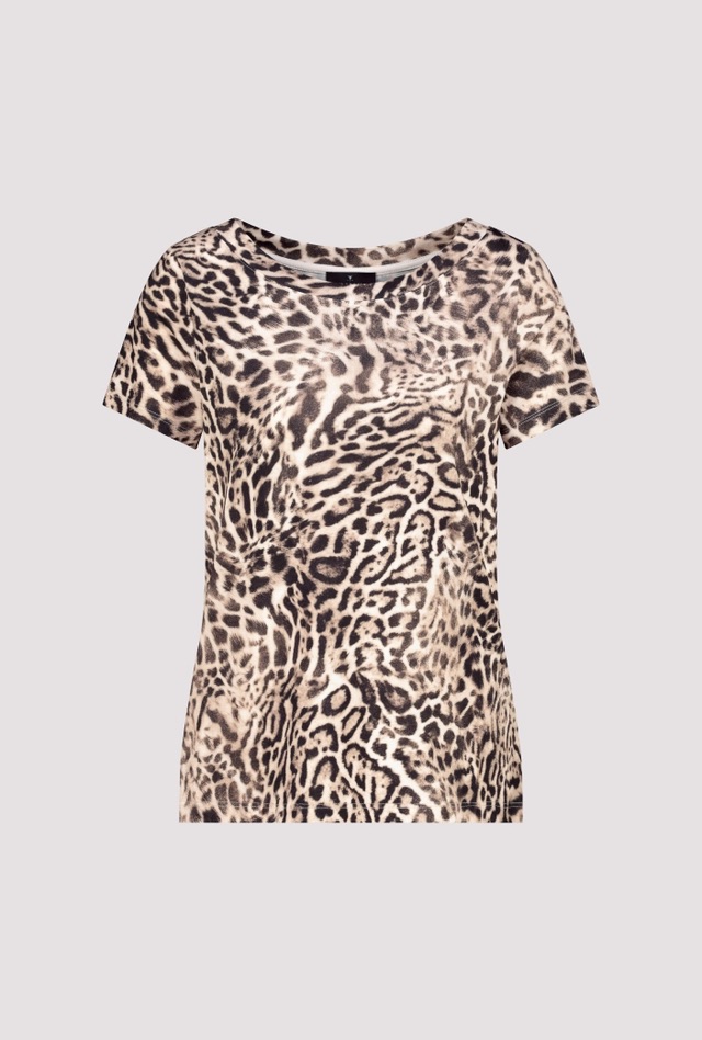 T-shirt van Monari in een animal dessin met korte aangeknipte mouwen en een ronde hals. Materiaal: Viscose 95%| elastan 5%