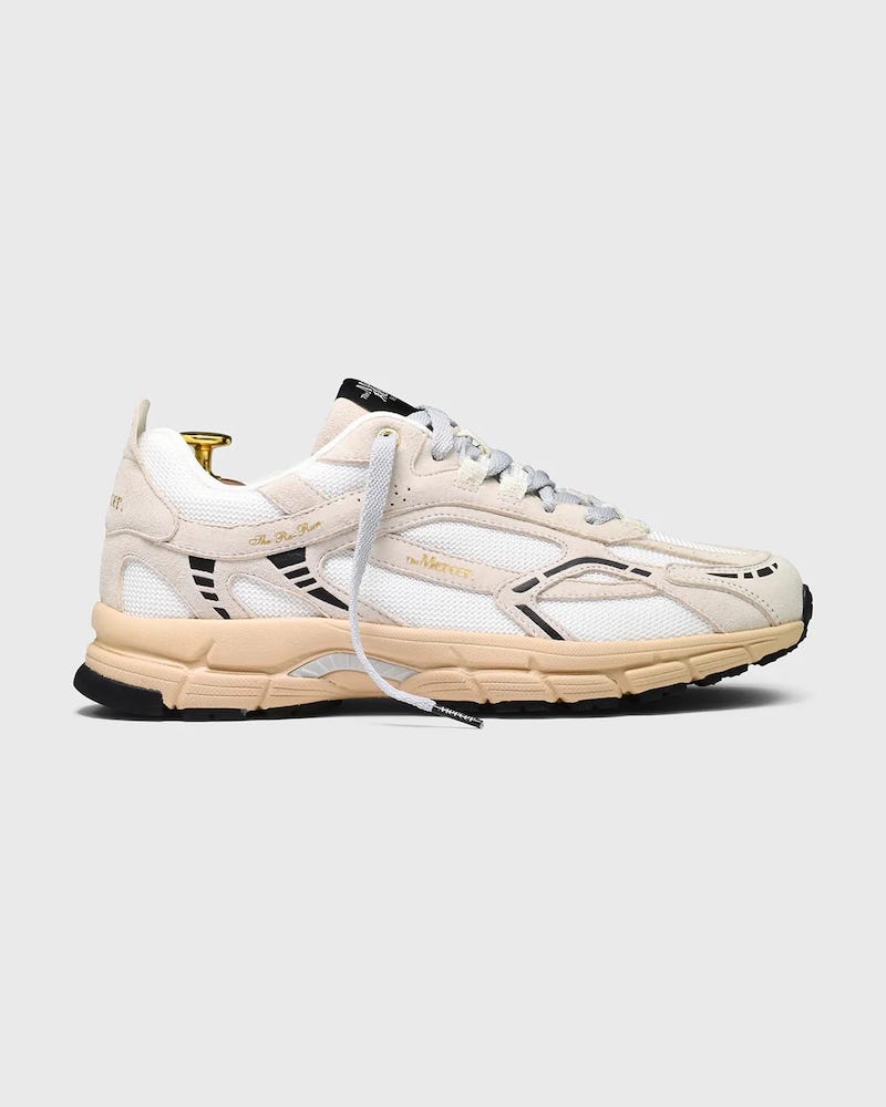 The Re-Run Desert sneaker van Mercer met een bovenwerk van premium nubuck in zon-verweerde tinten met mesh en zwarte accenten, een vetersluiting, vintage zool en voorzien van een gerecyclede binnenzool en gerecyclede verstevigingsbinnenzool.