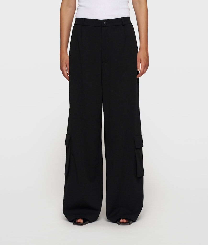 Deze relaxed fit wide leg pantalon van 10DAYS is gemaakt van lichte zwarte crêpe stretchkwaliteit die de hele dag comfortabel draagt. De middelhoge taille met elastische tailleband en de gulp met rits en knoop zorgen voor een verfijnde, professionele uitstraling. Steekzakken, opgestikte zakken en een subtiele nepachterzak geven het silhouet een moderne touch. De 'costume comfort' borduring op de linker zak onderstreept de signatuur van de 10DAYS925-collectie.