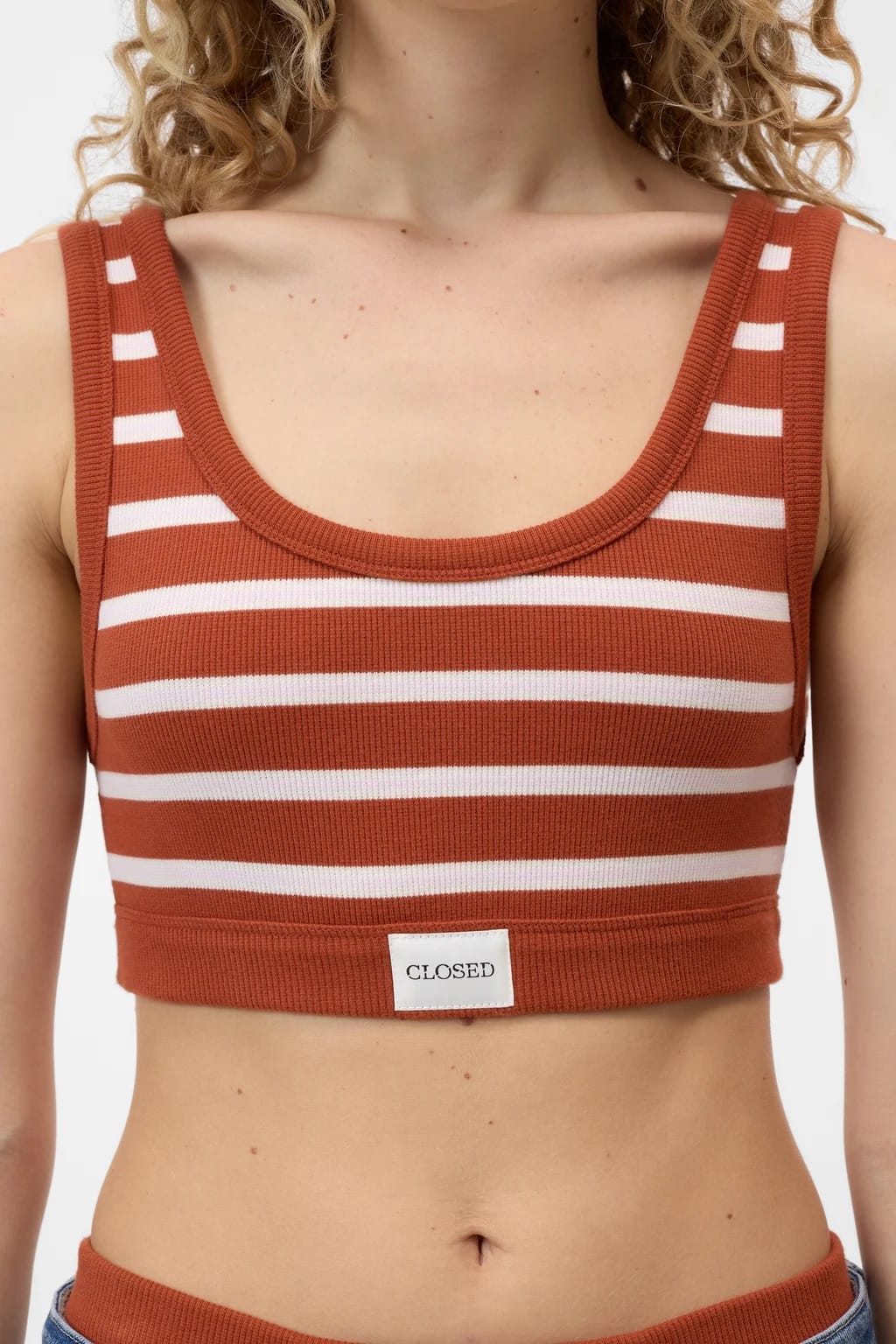 Gestreepte braletta van Closed in ribstructuur met een ronde hals en logo aan de voorzijde. Materiaal: Katoen 95%| elastan 5%